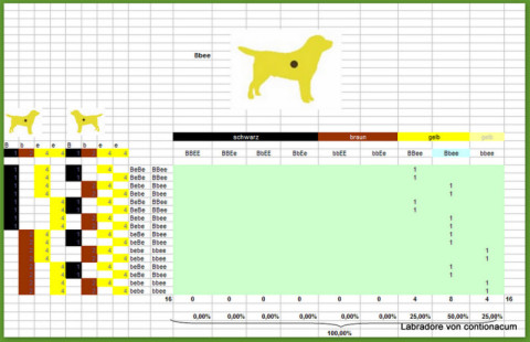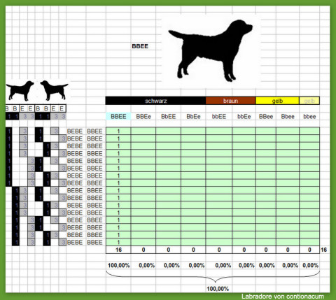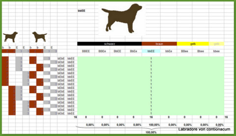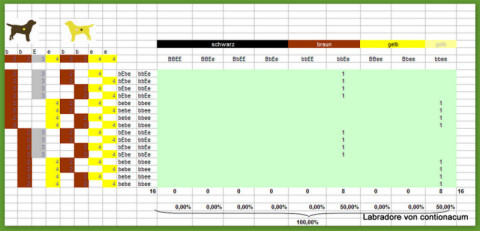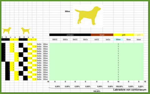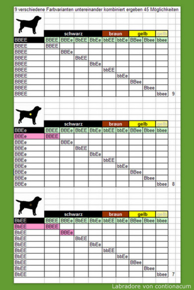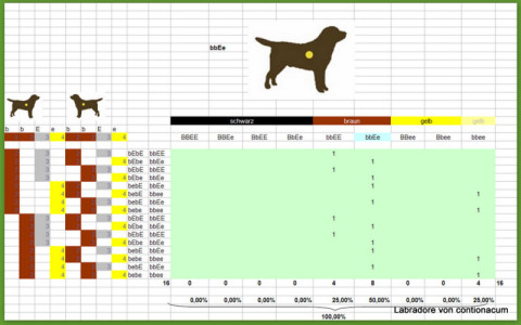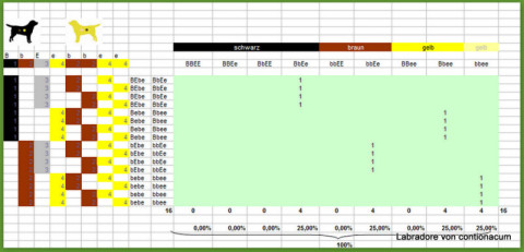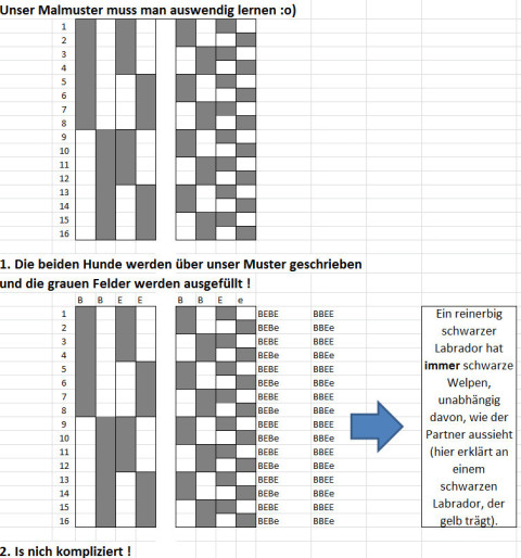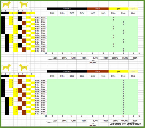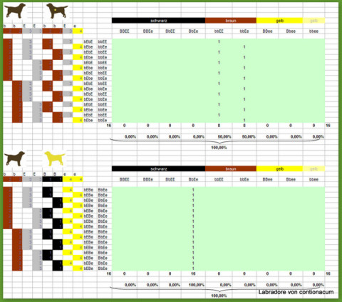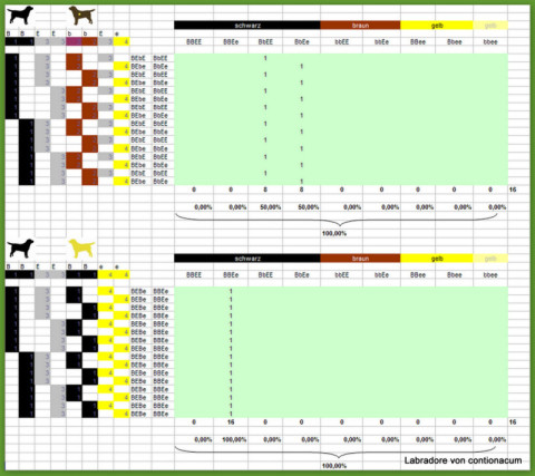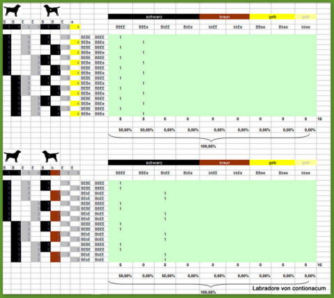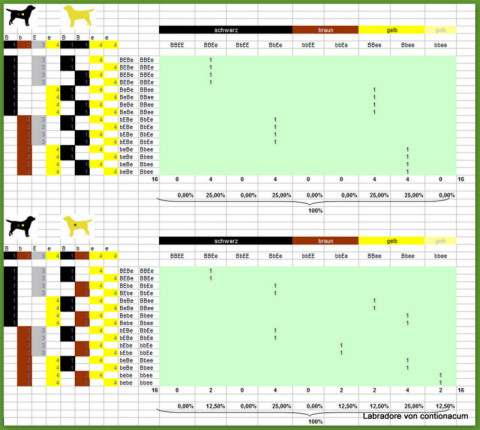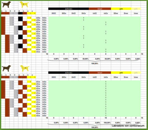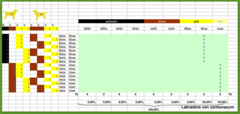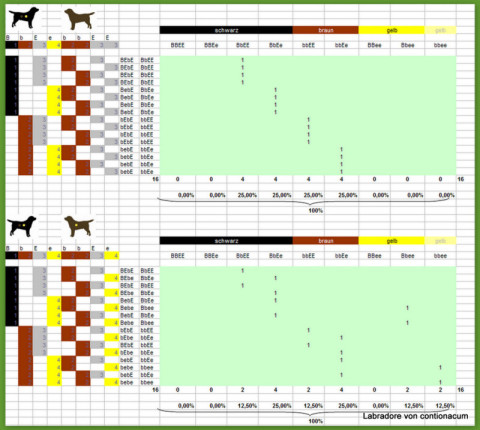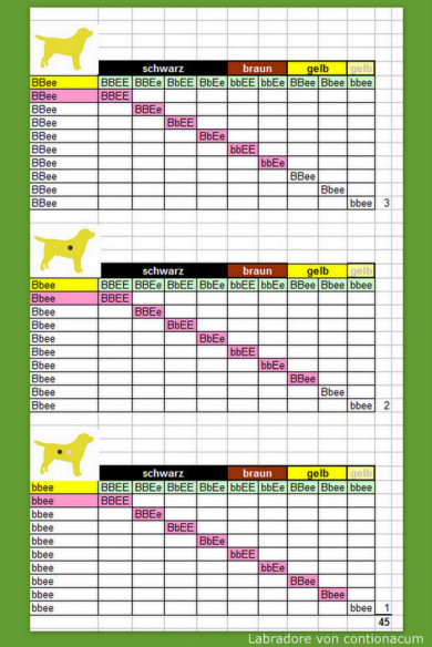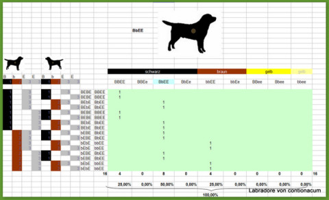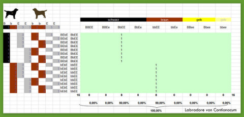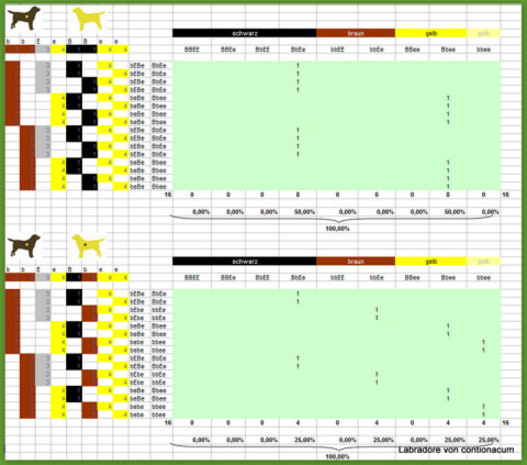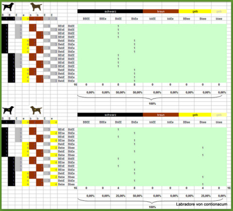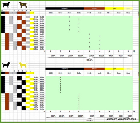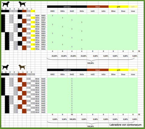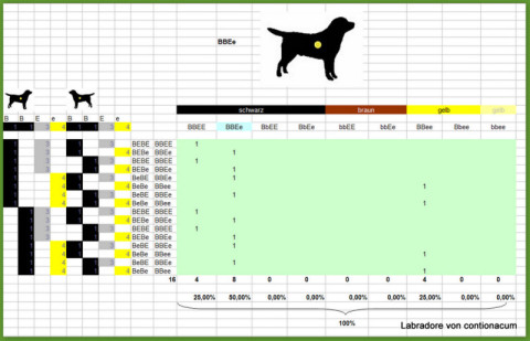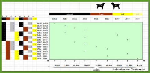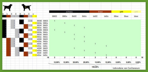 schwarz trägt braun, BbEE & braun trägt gelb, bbEe