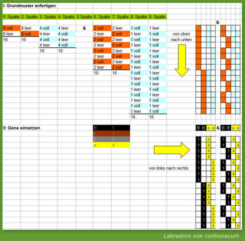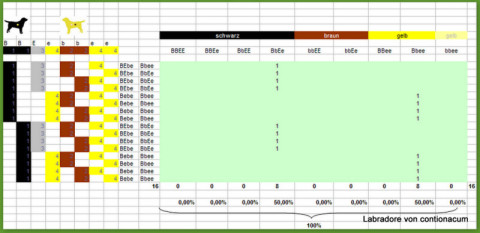 braun trägt gelb, bbEe & gelb trägt kein B, bbee