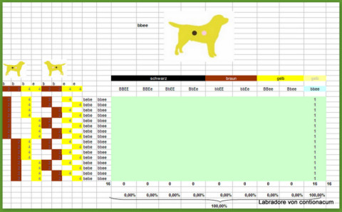 schwarz trägt braun und gelb, BbEe & gelb trägt braun, Bbee